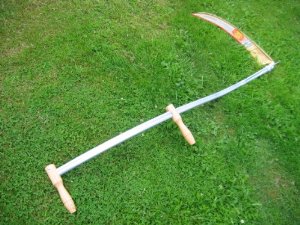 me with a scythe to use to cut grass. Between her cabin and her one-acre garden,